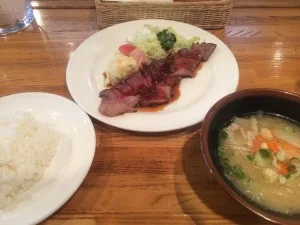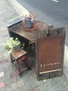 この日の日替わりランチはローストビーフ。おいしかった。 ここは洋食屋なのに豚汁がセットでついてきて、テーブルには箸が置かれている。日本人にはありがたい。 ランチの後は今来た道をそのまま引き返し、 上終町のバス停の向かいにあるそうげんカフェへ。