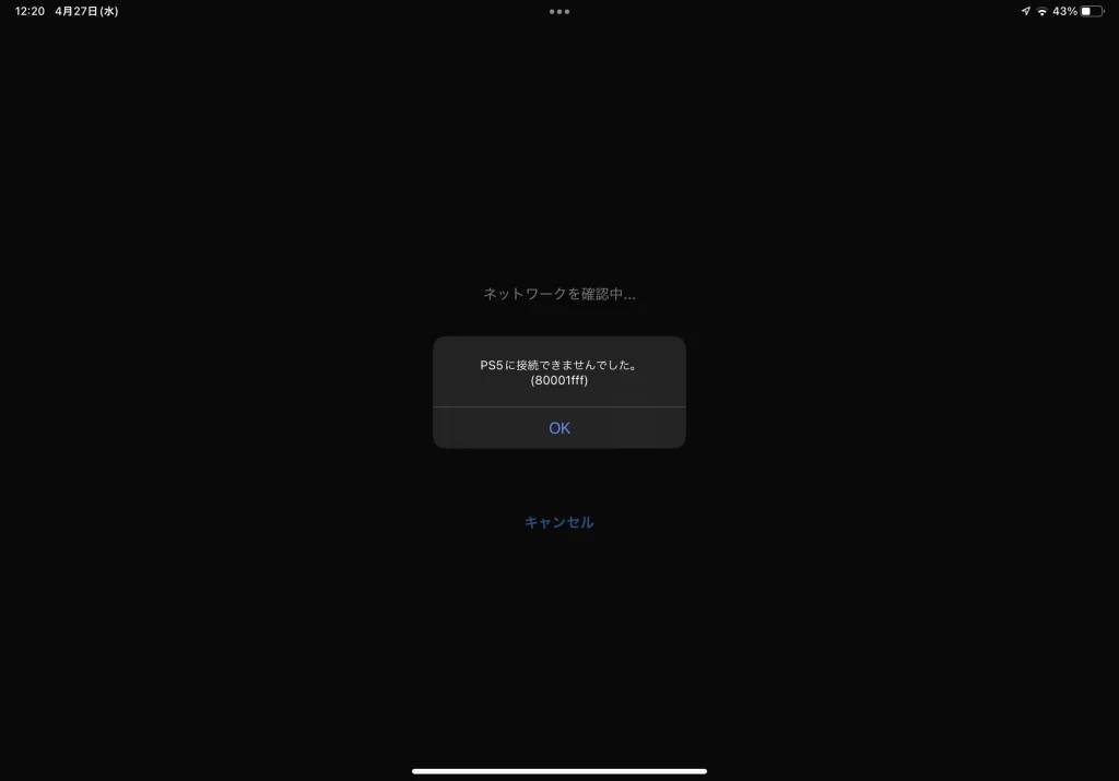 iPad Pro から PS Remote Play で ローカルの PS5 に接続しようとしたらエラーになってしまった。